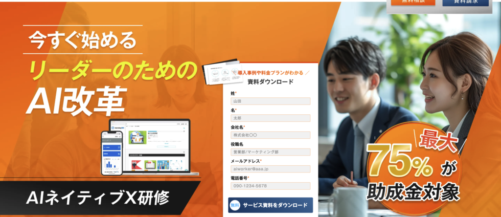 【最大75%が助成金対象】AIworker|導入実績豊富なAIリスキリング研修サービスAIworkerは、企業のAI改革を支援するリスキリング研修サービスです。eラーニングとセミナー形式で、ChatGPTやAreskilling-training.ai-worker.net